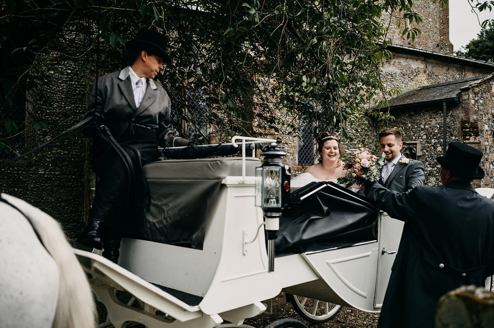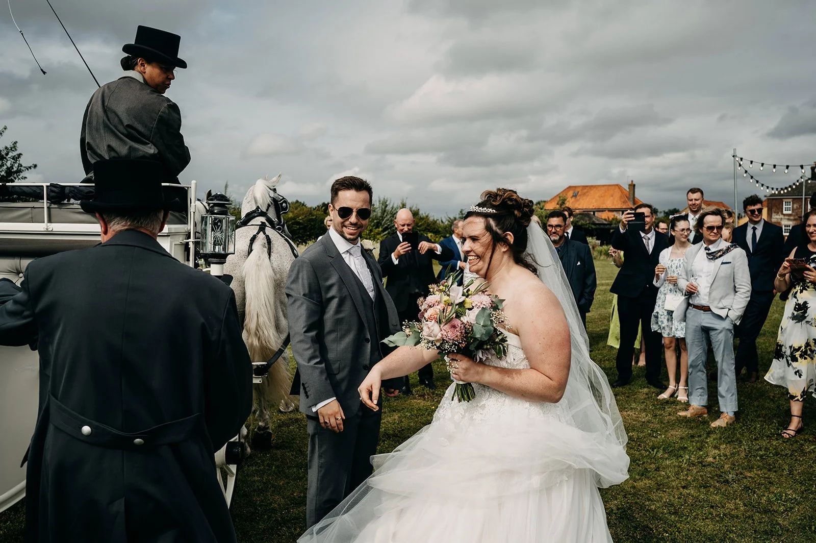 I started at the family home with Samantha and her bridesmaids to document the couple of hours before the ceremony, then headed just up the road to the church in Beeston-next-Mileham to photograph their church ceremony. Then we all headed back to the house for a lovely wedding reception and a big party with a string quartet for the earlier parts and a live band for the party. The first dance was epic with a choreographed routine that wowed all of the guests!